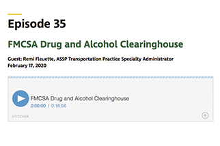 A recent episode features Remi Fleuette, ASSP Transportation Practice Specialty Administrator. He discusses the Federal Motor Carrier Safety Administration Clearinghouse, an online database that provides information about commercial driver’s license and commercial learner’s permit holders’ drug and alcohol program violations. He speaks about information that this resource provides and how it can help safety professionals and employers develop policies for motor vehicle fleets.