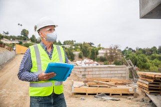 • Construction worker writing on a clipboard